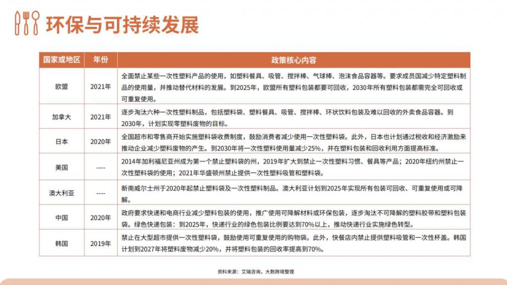 随着各国开始实施环保与可持续发展政策,可重复使用餐具、可生物降解塑料餐具、有机餐具等市场或将迎来增长。