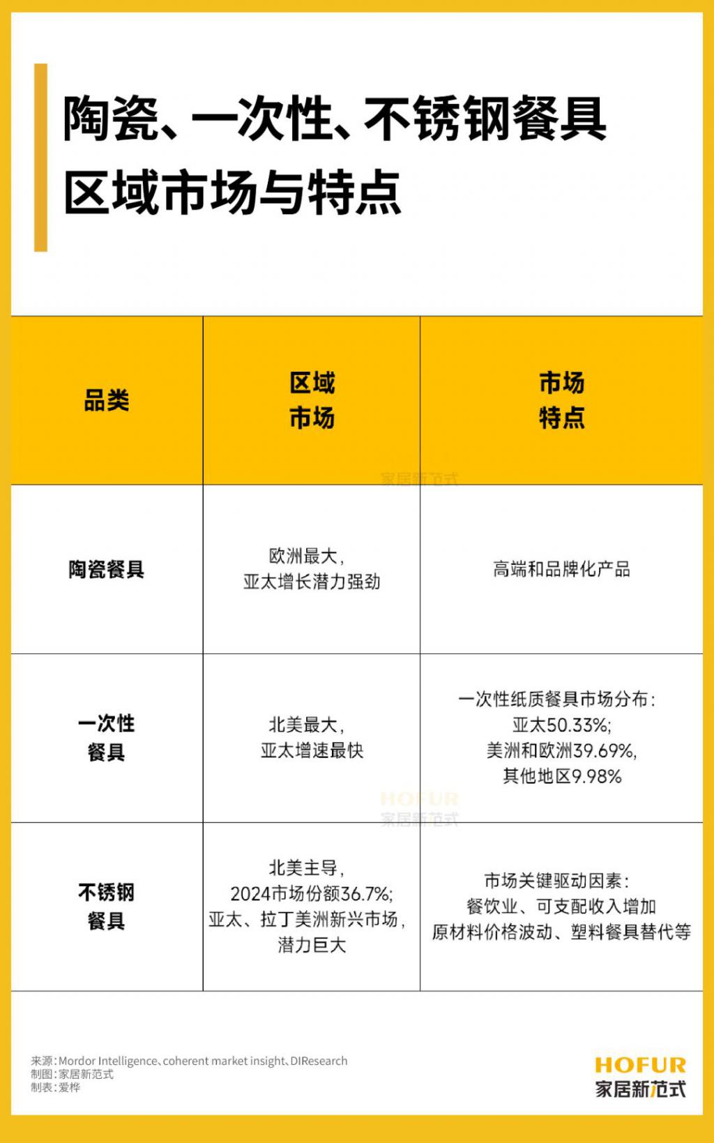 不过,从具体市场规模来看,却是陶瓷>一次性餐具>不锈钢餐具。未来增长潜力及市场分布也各有侧重。
