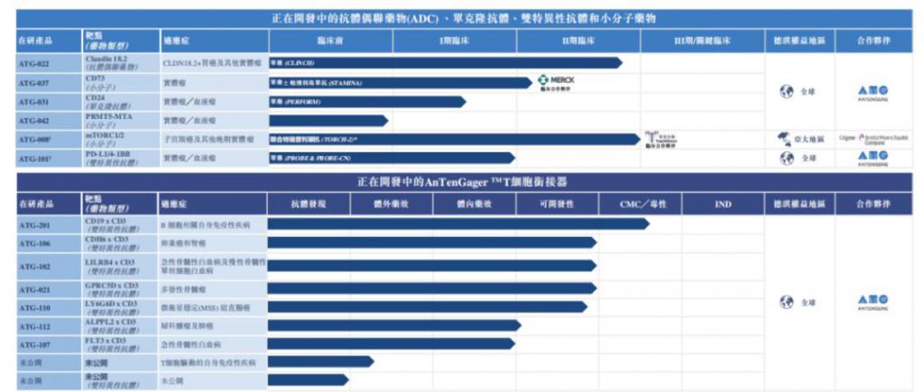 但好的一方面是,商业化层面遇到的阻力,并没有打击德琪医药对于未来的布局。除塞利尼索外,德琪医药还拥有 Claudin 18.2 ADC 药物 ATG-022、mTORC 1/2 抑制剂 ATG-008、PD-L1/4-1BB 双特异抗体 ATG-101 等临床管线。而在临床前,德琪医药通过 TCE(T 细胞衔接器)技术平台 AnTenGager 开发了 9 个临床前项目,主要是围绕 CD3 靶点开发的双抗药物。