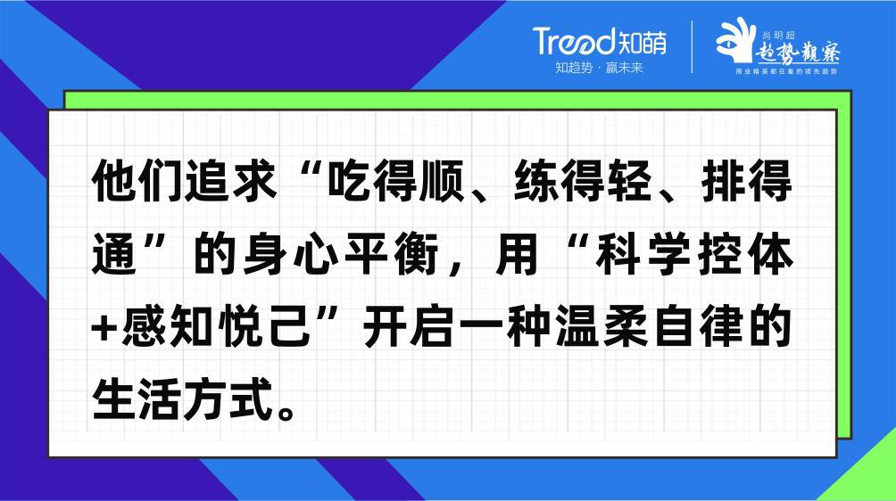 今天的年轻人在进行身材管理的时候,不希望用太极端的方法去达到什么理想的体重,而是更关注身体的轻盈感、舒适度和日常状态的自洽。他们追求" 吃得顺、练得轻、排得通 "的身心平衡,用" 科学控体 + 感知悦己 "开启一种温柔自律的生活方式。