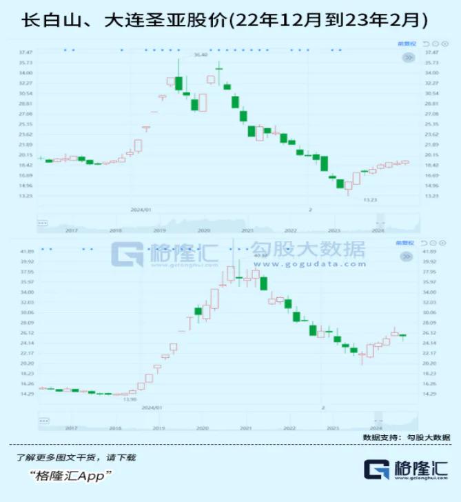 长白山和大连圣亚也多次在冰雪季上演急涨又急跌的过山车式行情。