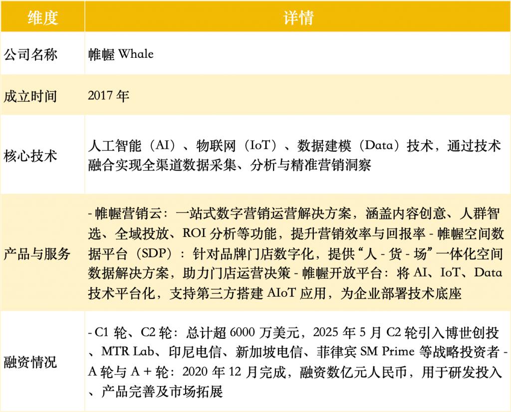 帷幄 Whale 中国总部位于杭州,全球总部位于新加坡,本次融资引入了博世创投、MTRLab、印尼电信、新加坡电信与菲律宾最大零售集团 SMPrime 等新战略投资者。