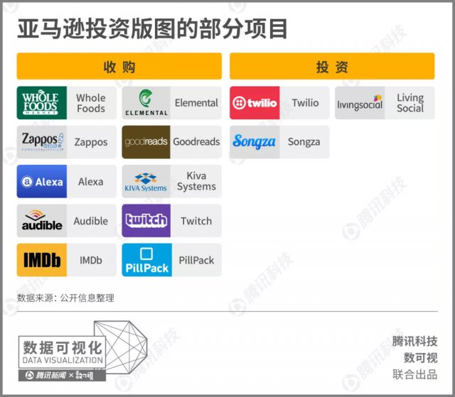 亚马逊从创立到最终突破万亿市值花了多久?同是电商和零售业巨头的沃尔玛、阿里和它之间的营收排名怎样?亚马逊的投资兴趣在哪些领域?腾讯科技联合数可视将用一组图来为你展现亚马逊帝国的成长史和它现今的投资版图。