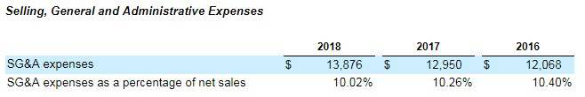 ▲ 2016-2018 财年 Costco 的管理费用数据