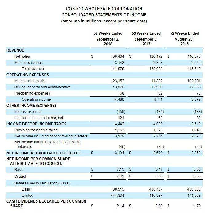 在讨论 Costco 本质之前,我们有必要看一下 Costco 的财务数据。