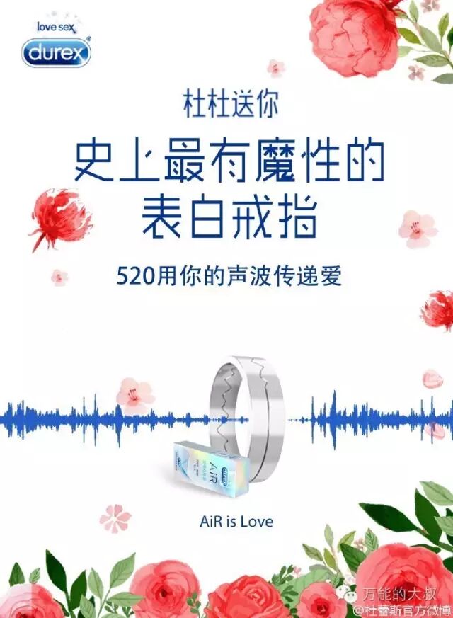 “最具魔性的表白戒指”、“声波传递爱”、“AIR IS LOVE”,每一句都很正经,不知为什么,配在一起总觉得不那么正经。