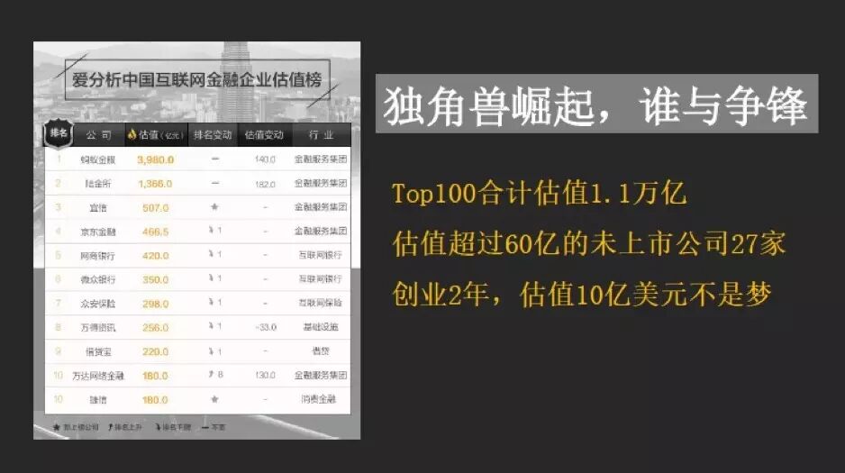 互联网金融行业足够大,很多市场都是百亿级别的,因此我们在做榜单的时候感受到对于这个行业来讲,估值真的不是特别大的问题。