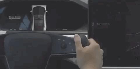 这是汽车设计的一次不小的创新。根据特斯拉官方演示,在中控大屏最左侧一列,司机只要向上划,就切换到 D 挡,向下划则切换到 R 挡。