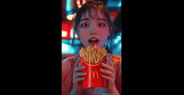 典型案例就是日本麦当劳在去年为了宣传薯条优惠活动推出 AI 广告片,除了出现 AI 人像多一根手指这种基础错误外,整个广告片也被批评人物表情不自然、缺少亲和感、动作违和,甚至有网友调侃 " 看着像是肯德基卧底拍的广告 "。