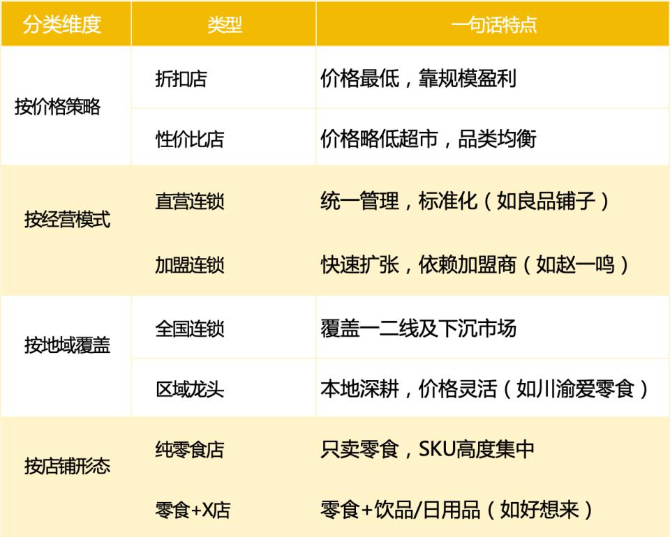 折扣型量贩店以 " 极致低价 + 大包装 " 抢占市场,单店 SKU 超 5000 种,毛利率 18%-25%,头部品牌年增速超 300%。