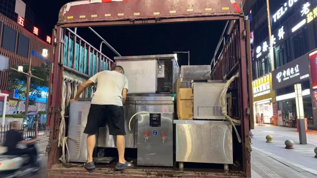 他做了一个大胆的决定——从茶饮老板转行二手设备收购。2023 年 5 月正式入行,同年 10 月建了第一个仓库。