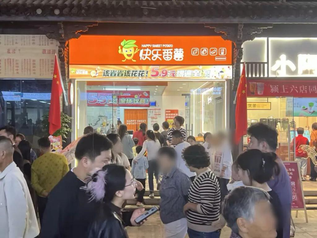 福建品牌快乐番薯也在国庆打了一个大胜仗,同比去年,全国总流水涨幅高达近 80%,出杯数翻番,单店日均等维度都实现了历史突破,其中招牌老红糖薯圆奶茶依然稳居销量冠军。