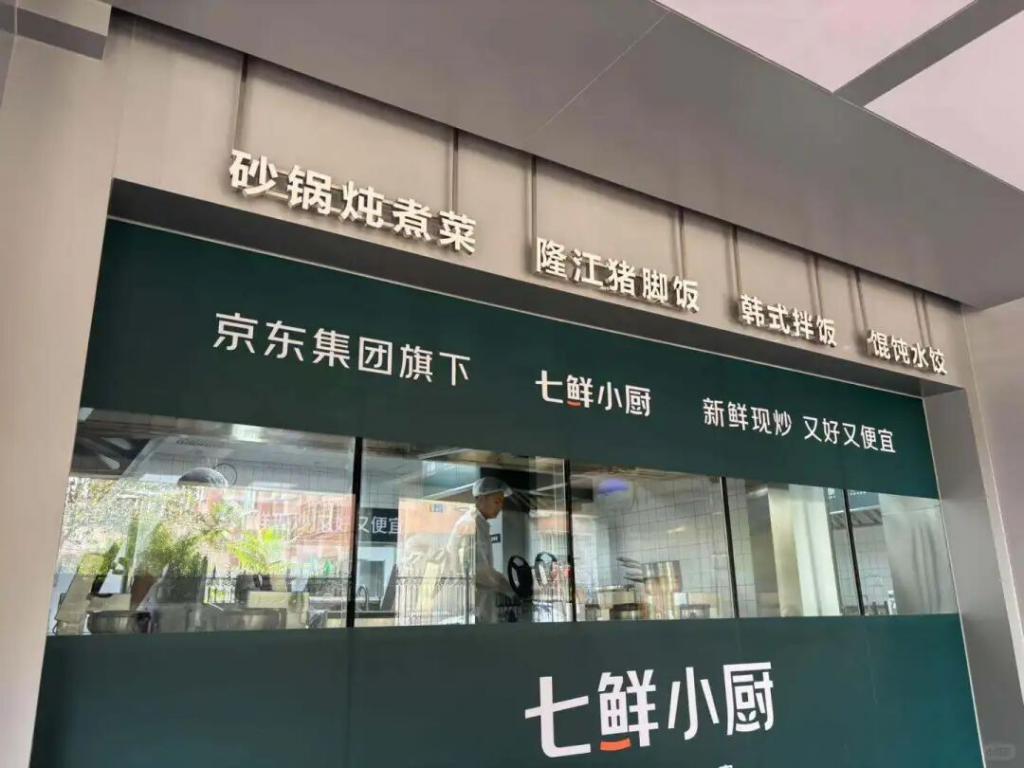 值得一提的是,七鲜咖啡并非独立布局,而是依附于七鲜小厨存在。门店位于京东旗下新开业不久的餐饮制作平台七鲜小厨店内。
