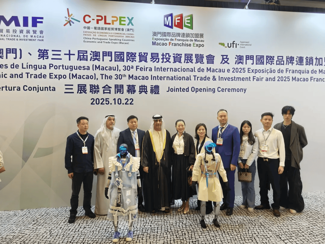 服装展是此次澳门年度三大指标性展会的其中一环。10月22日,第二届中国—葡语国家经贸博览会(澳门)、第三十届澳门国际贸易投资展览会及澳门国际品牌连锁加盟展开幕式现场,来自机械星球的“机器人军团”还充当“吸睛门面”,与全球各地的嘉宾互动,时而握手、击掌,时而配合拍照合影。
