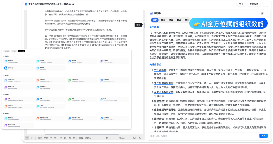AI全方位赋能组织效能:会议记录、流程审批、数据整理、跨部门沟通……现代职场在效率工具环绕下,却常陷入新的“数字泥沼”。360AI企业知识库集文件流转、文件处理、工作流、会议纪要于一体打造企业办公工具台,同时通过“AI助手”为企业员工提供安全的对话式工作助手,提高创造力并简化工作。