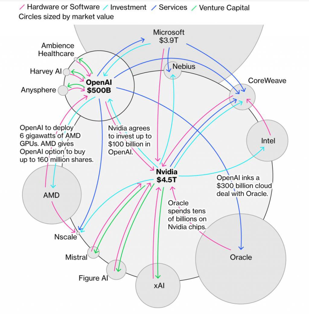 美国 AI 生态的最大特点,不只是技术领先,而是资本、硬件、软件与数据的互相嵌套。这场 AI 狂潮,已经演变成一个巨头之间相互投资、彼此绑定的庞大闭环。