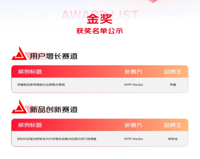 京旗数智案例大赛作为京东发起的权威赛事,一直以应用数智工具实现可度量增长为核心评审标准,旨在推动品牌与服务商协同创新,探索数智增长路径。众多业内精英齐聚于此,竞争异常激烈。在这样的背景下,WPP Media(群邑)荣获奖项的三项标杆案例覆盖新品创新、用户增长、营销提效三大赛道,充分展现了全方位的营销能力。