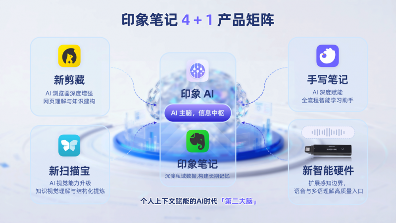 经过长期布局与实践,印象笔记近日正式宣布全方位焕新——在全新的战略指导和优化后的管理团队带领下,聚焦Agentic AI,全面升级产品矩阵与服务体系。围绕信息管理全链路,印象笔记将以软硬件结合的核心形态,赋能全球个人工作者、学习者与知识型组织。