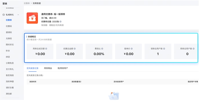 小鹅通还为商家提供完整的“制券-发券-核销-分析”全链路数据追踪能力。商家可以清晰了解每一张优惠券的流转路径和使用效果,为后续营销决策提供数据支持。