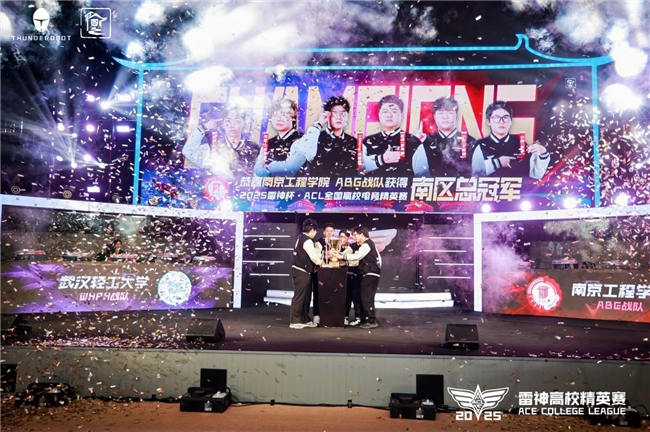 2025年11月1日至2日,2025雷神杯·ACL全国高校电竞精英赛南区总决赛,在四川省巴中市恩阳区科普大视界精彩上演。经过两天的激烈角逐,来自南京工程学院的ABG战队从四强中脱颖而出,成功摘得南区桂冠,赢得了通往全国总决赛的珍贵席位。