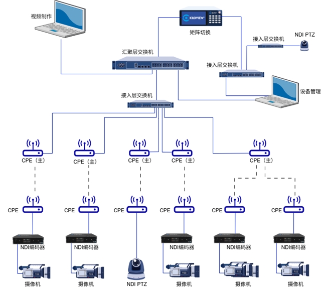 无线灵活部署:通过点对点无线接入点部署,摄像机可自由分布在赛道周边任意位置——维修区、看台或偏远角落,无需实体线缆。信号流优化:CUBE X1矩阵系统作为信号核心枢纽,无缝完成多路信号的切换与监看,取代传统复杂的路由器系统。