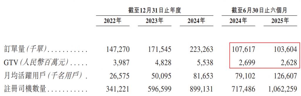 以最新披露运营数据的享道出行为例,2025 年上半年,其网约车订单量 1.04 亿单,同比下降 3.7%,GTV26.28 亿元,同比下降 2.6%。