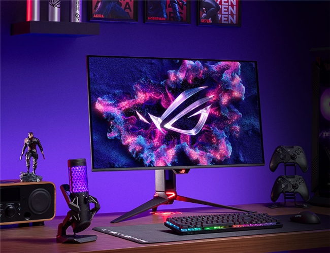 首先要推荐的一款ROG OLED电竞显示器,是近期刚刚上市发售的新品ROG超杀27 Pro二代电竞显示器。这款采用全新银色涂装与半透明机身设计的OLED电竞显示器,将赛博科技风发挥到淋漓尽致。26.5英寸WOLED面板设计的它,支持2K@540Hz与HD@720Hz双模式一键切换。玩家想要更超清的画质,可以选择2K@540Hz模式,想要更高的帧速率,则选用HD@720Hz模式,游戏体验更加畅爽。尤其是搭配上其0.02ms的响应时间,在高帧率、低延迟的双重加持下,游戏画面的流畅感如绸缎一般丝滑。而且它还搭载了G-SYNC Compatible和FreeSync Premium Pro技术来挥别画面卡顿和撕裂。支持ELMB动态影像清晰技术来消除画面残影和动态模糊。并且还具备ROG游戏AI技术,通过动态准星、动态阴影增强以及AI视觉来充分强化玩家的游戏体验,带来更智能的训练与水平提升!