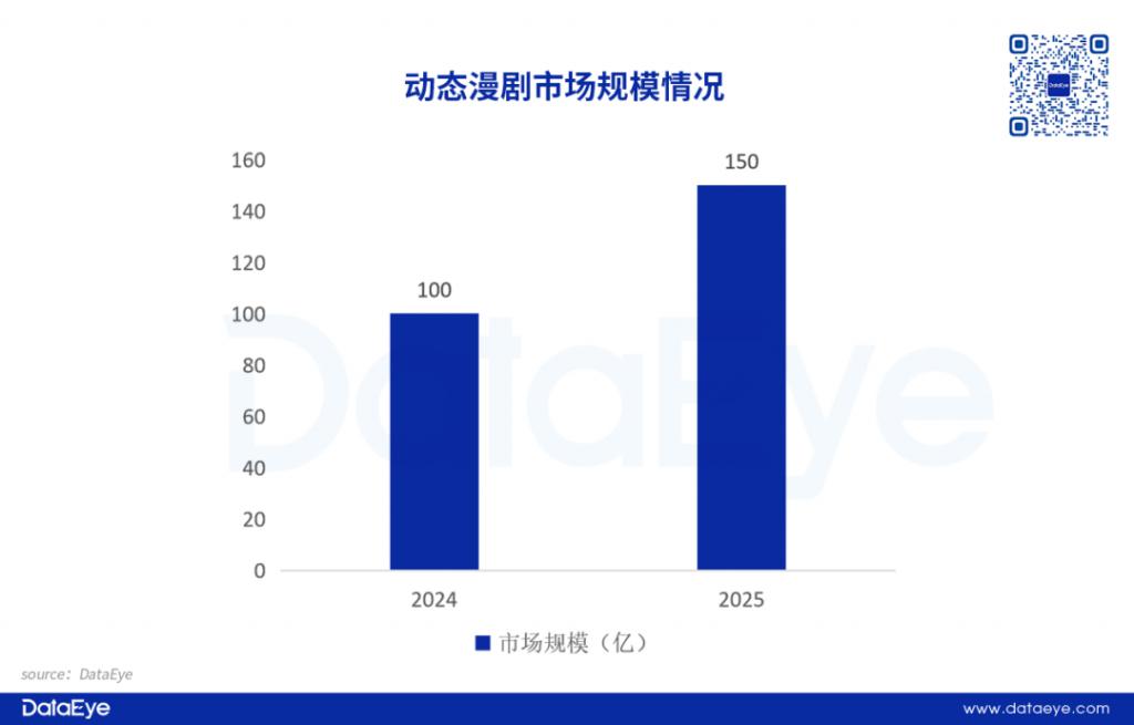 DataEye 研究院数据显示,2024 年动态漫市场规模已达 100 亿,而 2025 年的市场规模预计高达 150 亿,增速为 50%。