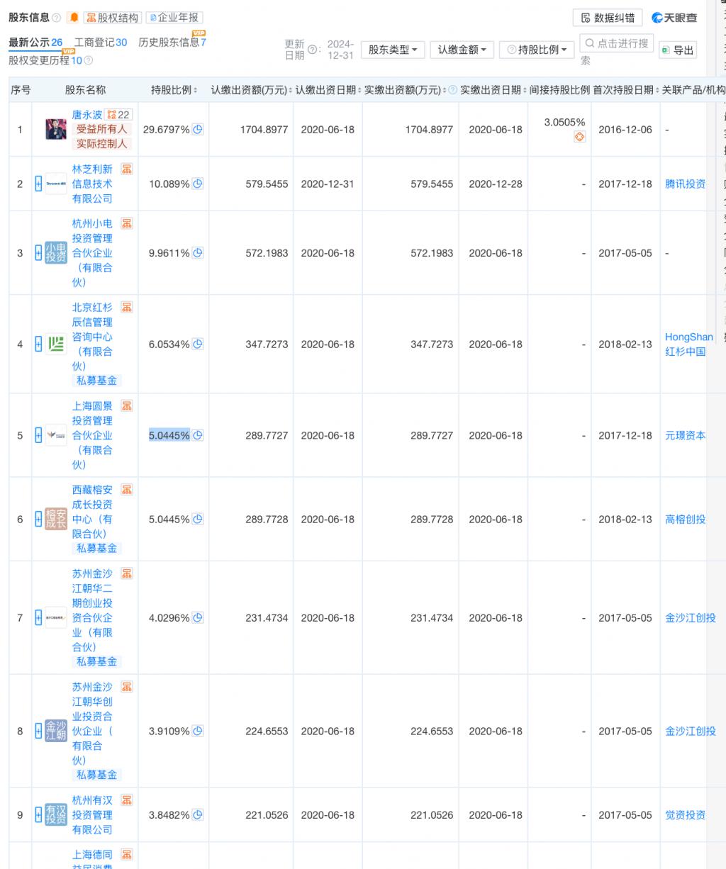 成立至今,小电科技吸引腾讯、红杉、金沙江创投等持续投资。天眼查 App 信息显示,小电科技创始人唐永波持股 29.6797%;腾讯投资持股 10.0890%,系最大外部股东;金沙江创投合计持股 7.9405%;红杉中国持股 6.0534%;元璟资本合计持股 6.2979%;高榕创投持股 5.0445%。