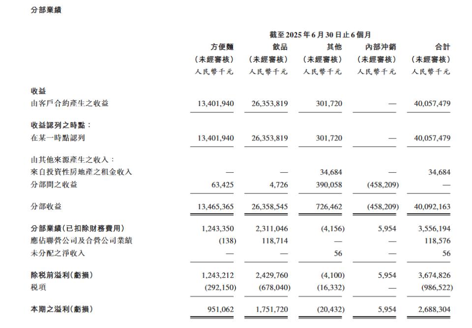 从财报数据来看,2025 年上半年统一总营收约 170.87 亿元,同比增长 10.6%,净利润为 12.87 亿元,同比上升 33.2%。其中饮品业务录得 107.88 亿元的收益,占总营收的 63.1%,同比增长 7.6%,是拉动集团增长的首要引擎。