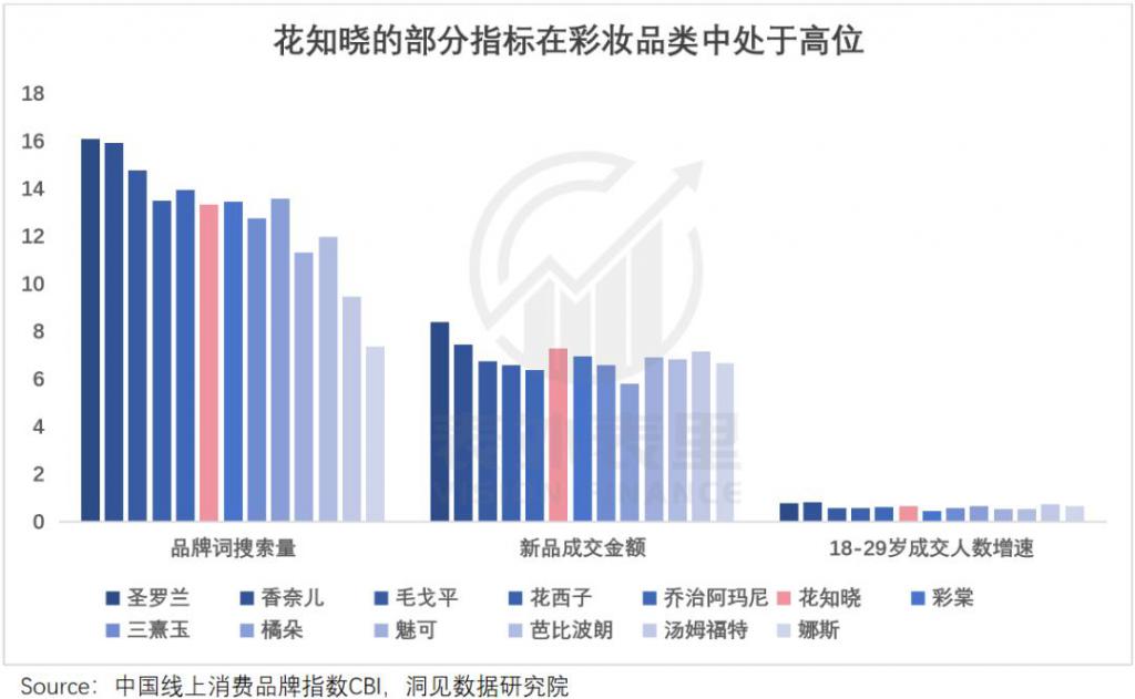 首次登上 CBI500 榜单的国货彩妆品牌花知晓也如此,其抓住 " 三坑 "(汉服、JK、Lolita)人群高频装扮、热衷晒图的刚需,以草莓丘比特、蝴蝶云肩等 " 颜值即正义 " 产品,打出 " 国风少女彩妆 " 招牌,一举成为 CBI 名次上涨幅度最大的彩妆品牌。