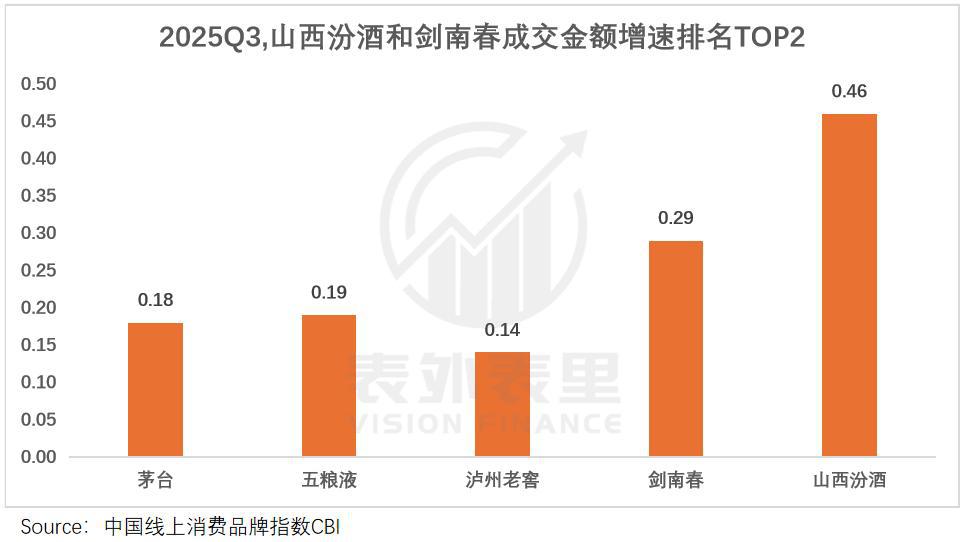 新喝法、新场景、新营销全面推动下,品牌拉进了与年轻群体的距离,汾酒、剑南春三季度的 CBI 指数中,18-29 岁成交金额增速领先。这也直接助推业绩逆势增长,山西汾酒是 2025Q3 唯三实现营收增长的上市酒企。