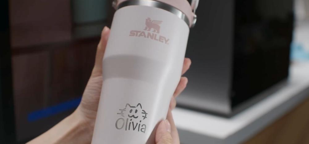比如,把爱犬的头像刻在保温杯、手机壳、笔记本封面上;结婚周年纪念日,买了两枚戒指,把日期刻在戒指上;赠送客户的钢笔,刻上一句祝福的话。