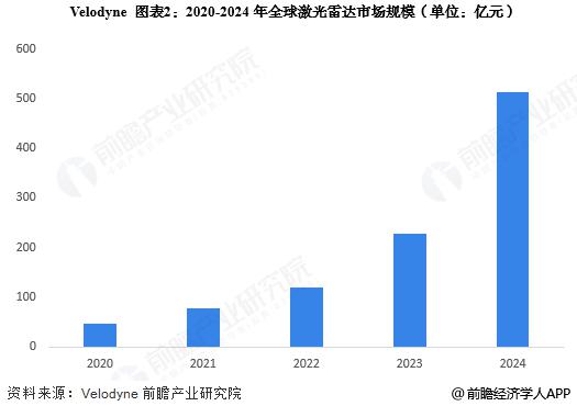 根据 Velodyne 披露的数据显示,2020-2024 年全球激光雷达市场规模逐年增加,2024 年达到 512 亿元,同比实现翻番。