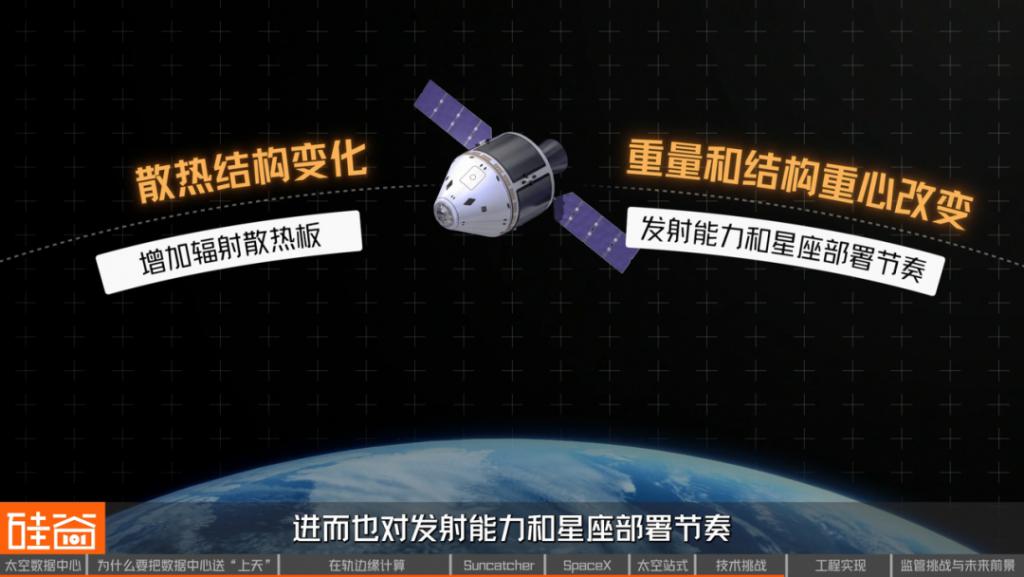 随之而来的,是散热结构的变化。通信载荷产生的热量有限,但算力载荷会持续发热,这意味着卫星外部, 必须增加专门的辐射散热板,把热量稳定地送向深空。
