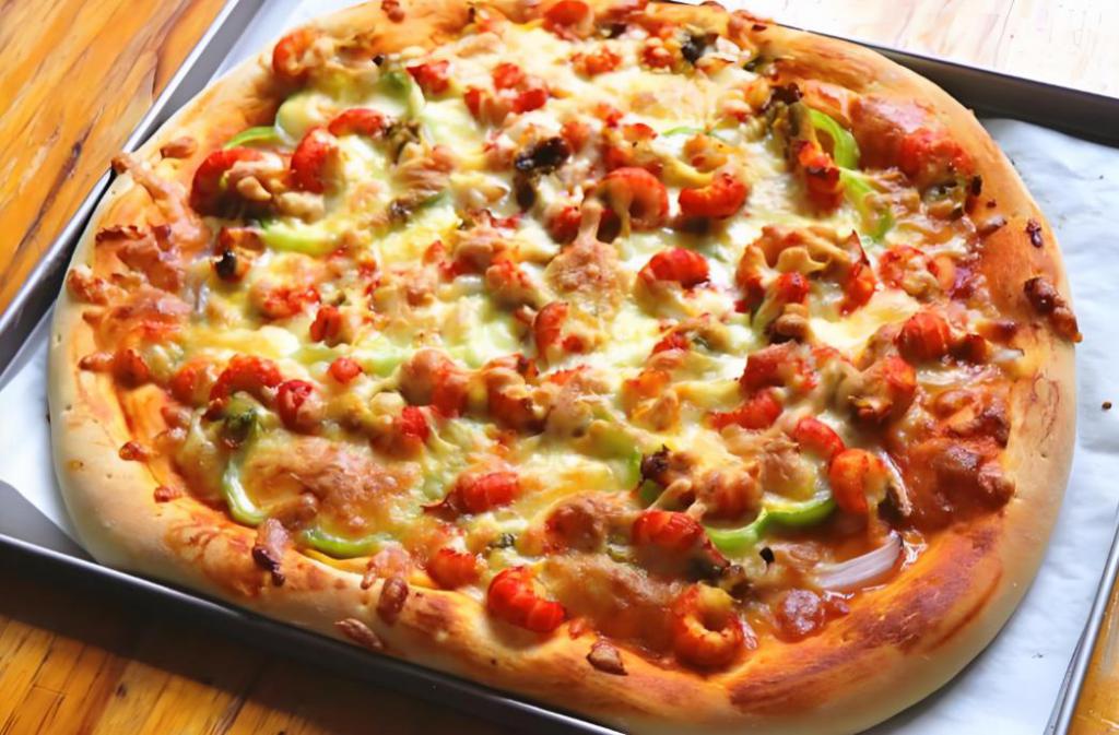 上图 | 小龙虾比萨。下图 | 酸菜鱼比萨