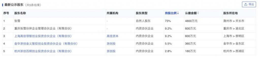 张雪机车股东持股情况 来源:烯牛数据