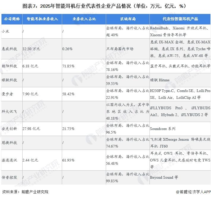 中国代表智能耳机企业业务发展概况,及企业产品系列、市场定位等指标对其竞争力进行评价如下: