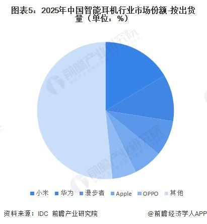 2025 年 1-6 月,小米、华为、漫步者、苹果、OPPO 等企业智能耳机出货量位居前五,分别约 989 万台、660 万台、504 万台、408 万台和 342 万台。