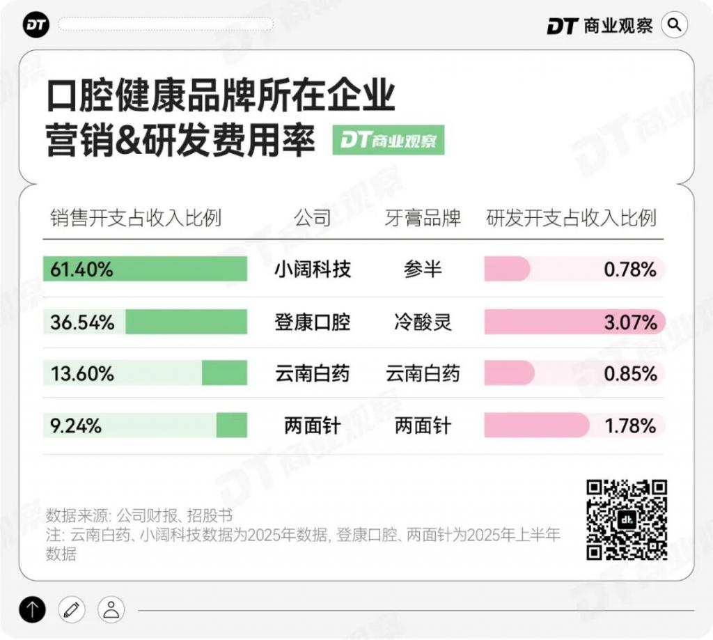 与高额的营销支出形成鲜明对比的是,小阔科技在研发投入上格外吝啬。2025 年,小阔科技的研发费用率仅为 0.78%。放眼行业,即便曾被诟病 " 轻研发 " 的冷酸灵、云南白药,研发投入也高于这一水平。