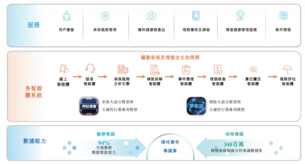 更为关键的是,它是中国健康险领域首家且唯一具备 " 全栈风险分析能力 " 的 AI 驱动科技公司,其服务贯穿了从产品设计、承保风控、理赔管理到保单服务的保险交易全生命周期。