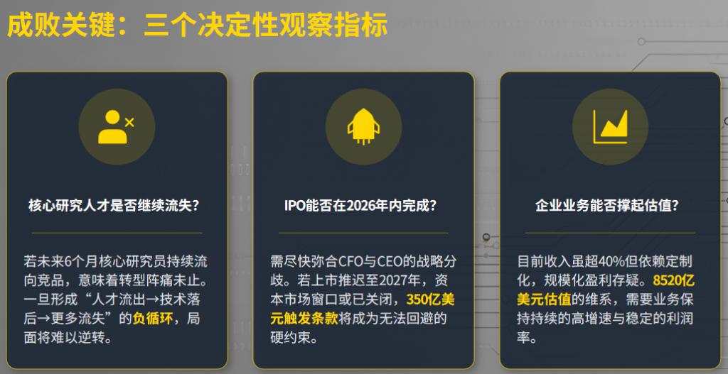 如果未来 6 个月仍有核心研究员流向竞争对手,说明组织转型的阵痛尚未结束。而一旦形成 " 人才流出→技术落后→更多人流出 " 的负循环,OpenAI 将很难逆转。