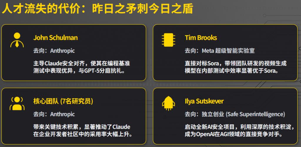 这不是技术叛变,而是全球 AI 人才流动的正常现象。但对 OpenAI 而言,区别在于——流失的是核心技术奠基人,他们带走的不仅是个人能力,更是 OpenAI 早期的科研理念与技术方法论。