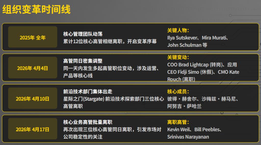 这不是一次孤立的人事变动。以下是过去两年的离职时间线: